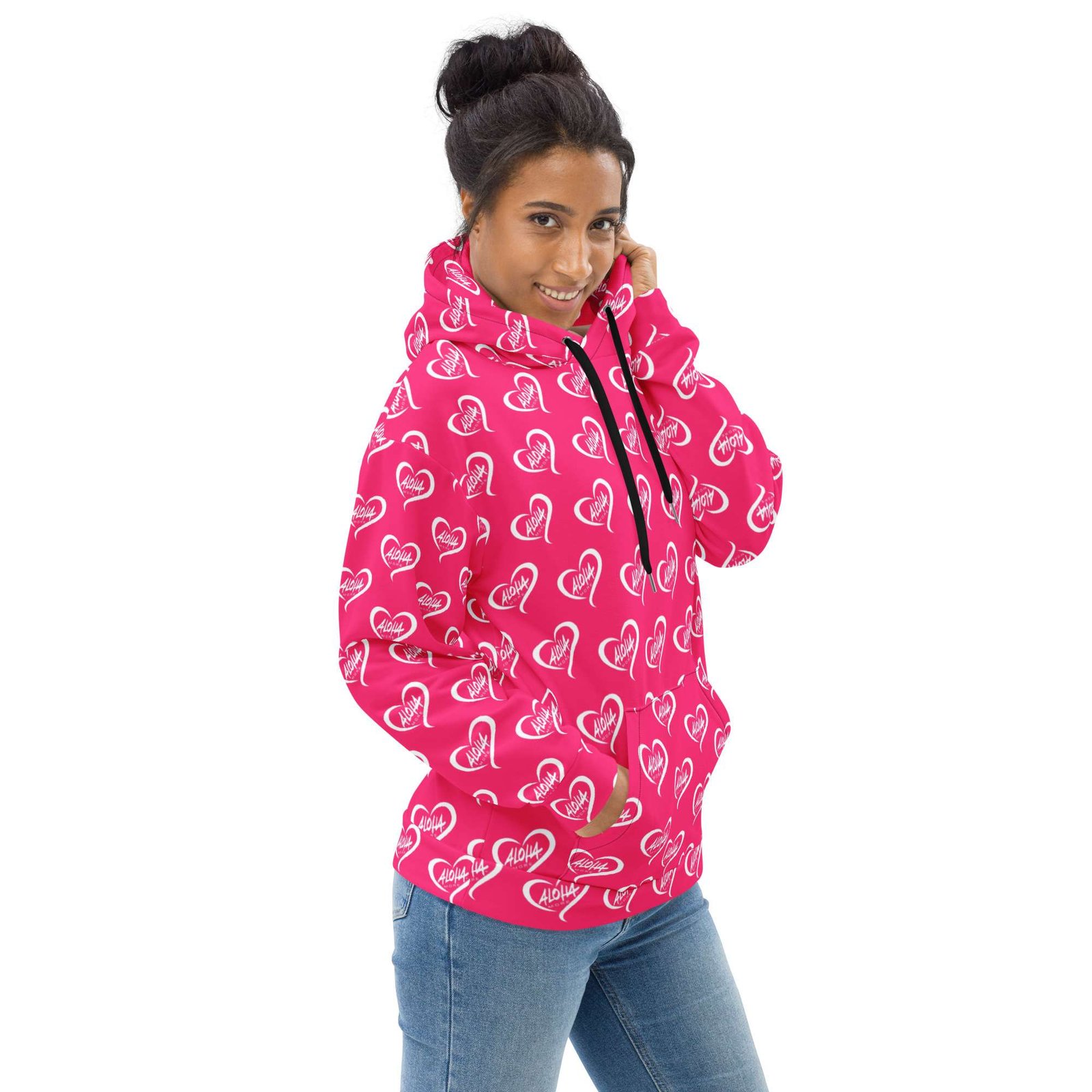 Wrap yourself in comfort and style with our signature all-over Aloha More print. This unisex hoodie features a soft, vibrant exterior and an ultra-cozy brushed fleece interior. With its relaxed fit, it’s perfect for layering up on chilly nights or making a bold statement any day.