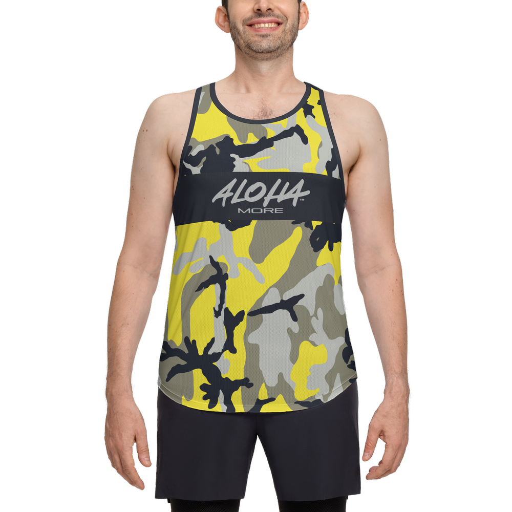 Yellow & Black Camo - Y-Back Muscle Tank Top (Performance Mesh)